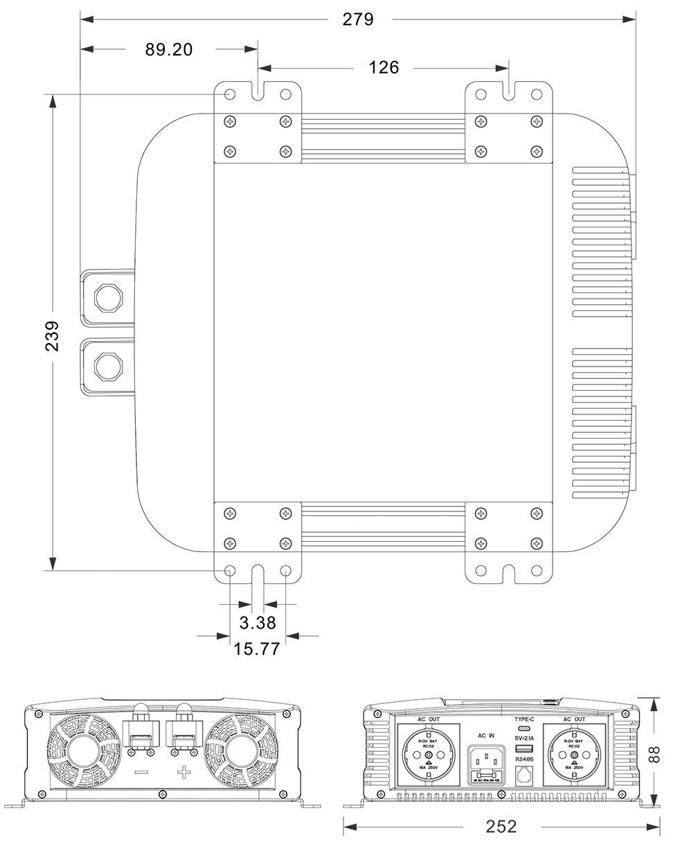Gambar Mekanik :( 279x252x88mm mm)