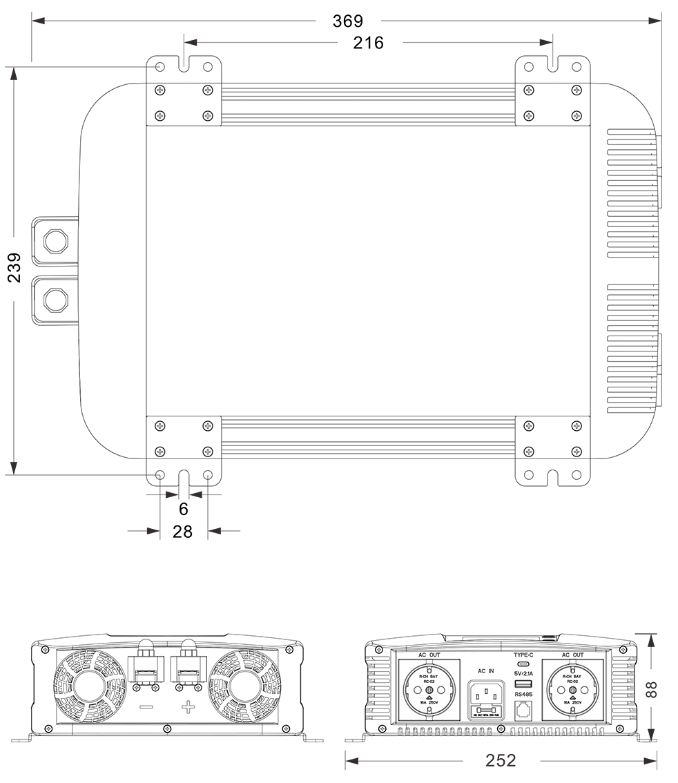 Yang lain Dimensi (L×T×D) 369×252×88mm