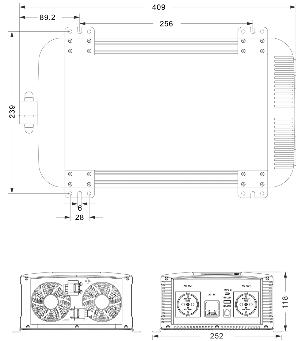 Saklar Pemindahan ATS standar:Inverter ke utilitas AC:8~10ms.;Utilitas AC ke inverter:16~25ms.